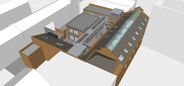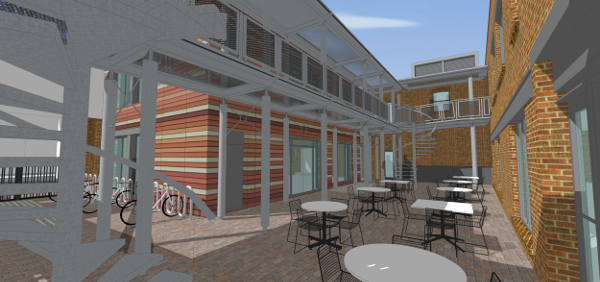 The existing buildings are being fully refurbished with rationalisation of roofs to simplify the interiors, and the concrete tiles replaced with slate. New brickwork is in keeping with the existing buildings, and double glazed windows with black metal frames were sourced to match the existing single glazed windows. The external access gangways for the first floor were replaced and covered, and a lift was added to make all floors wheelchair accessible. Toilets were added into individual units so that they are no longer shared between the separate units. The insulation is upgraded to current standards and an efficient heating and cooling system has been integrated. Work is progressed on site in October 2016 and is due for completion in June 2018.